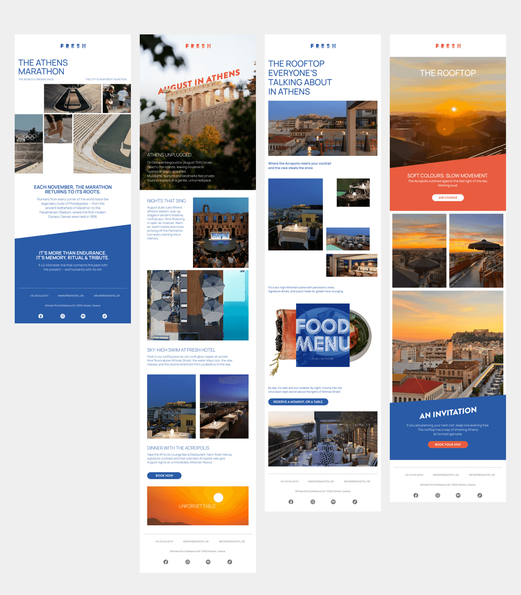 Our scope covered the full restructuring of Fresh Hotel’s digital ecosystem. Creative direction, social strategy, paid media, website optimization and email marketing were aligned under one clear performance framework focused on measurable booking contribution.